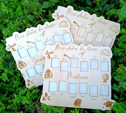 Le cadre mesure 35x30cm. Il y a les encoches pour chaque année, depuis la Petite section jusqu'à la 3ème.